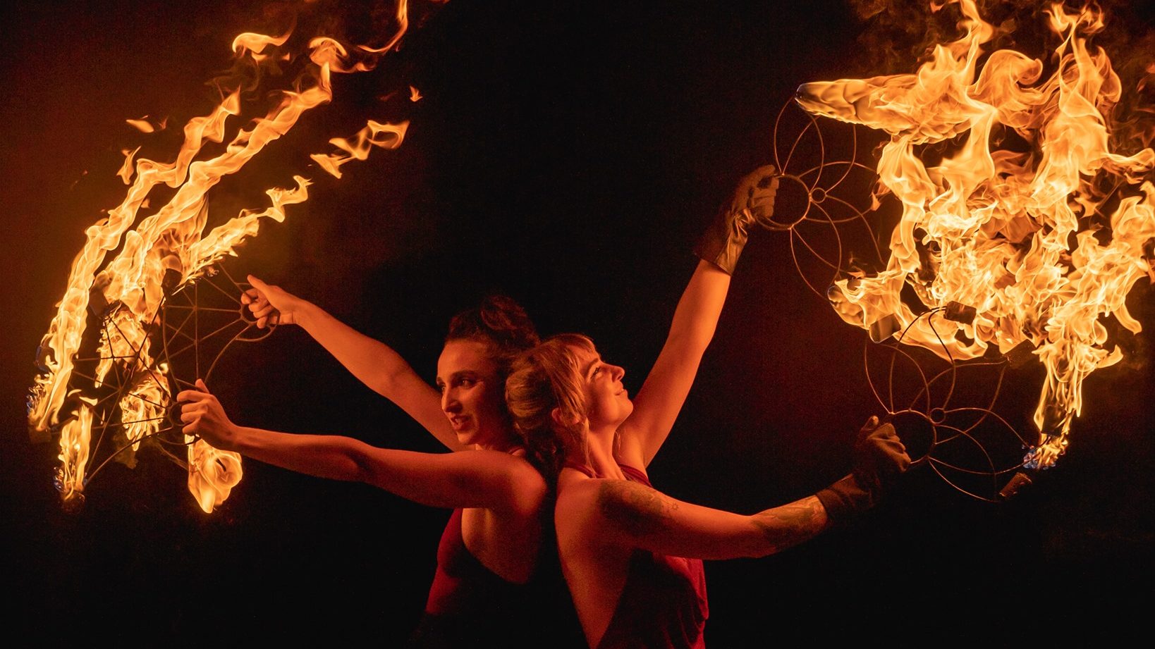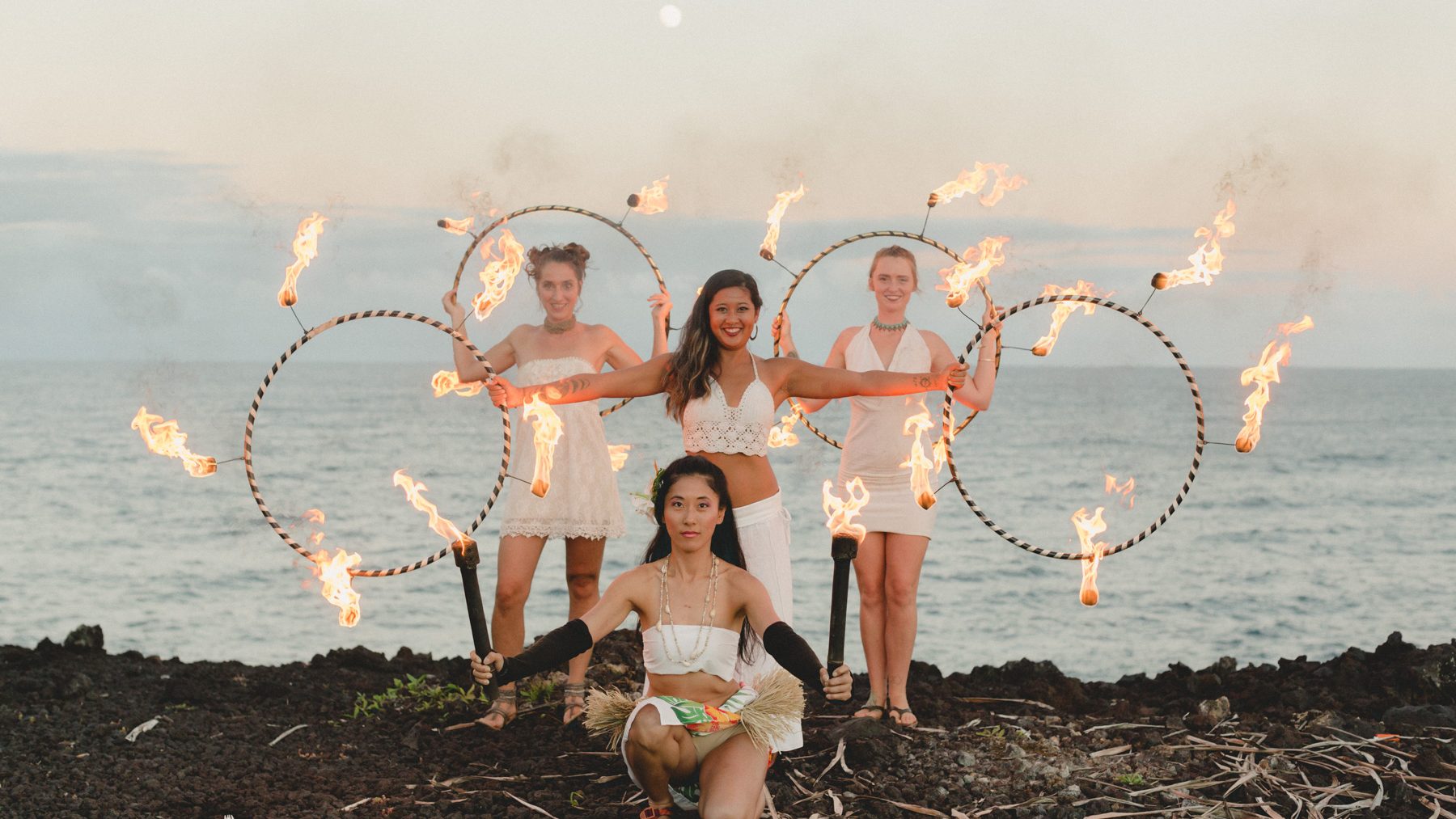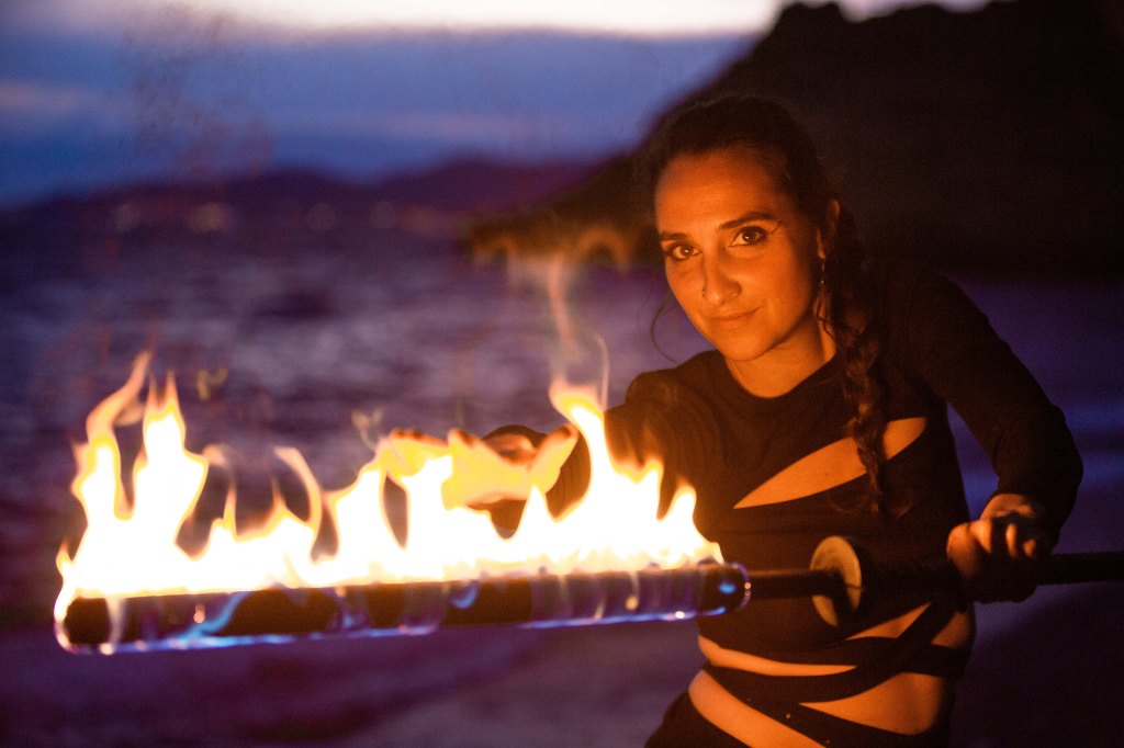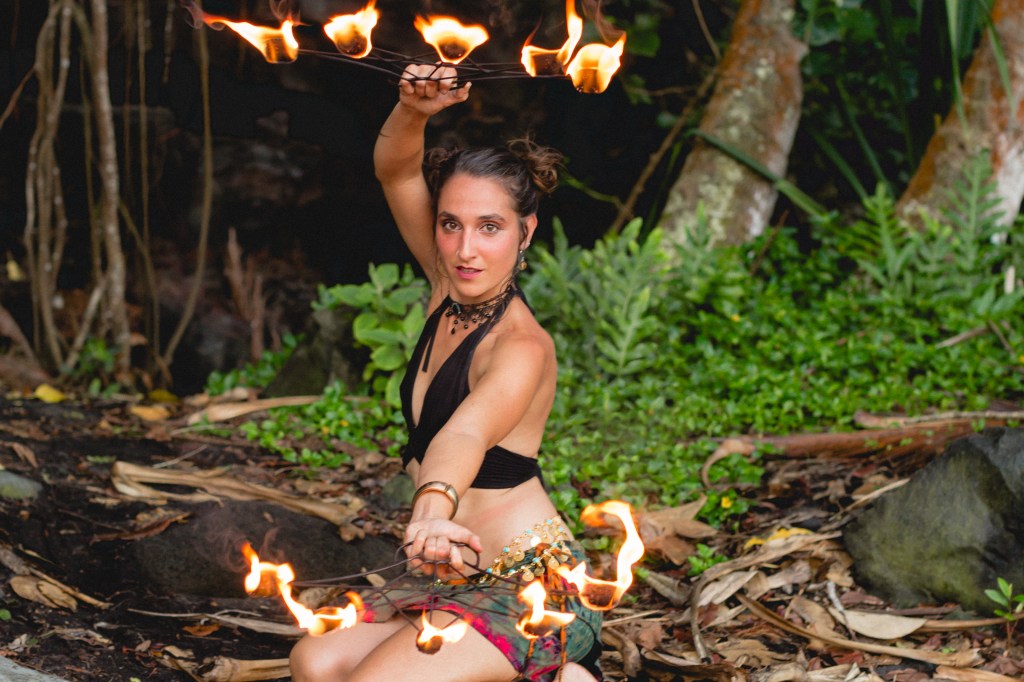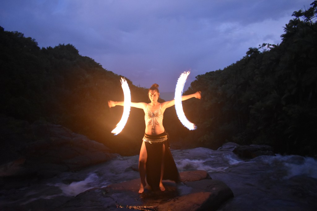 Crear con otras artistas es llevar la magia al siguiente nivel. Así surgió esta fusión de baile con fuego y danza tradicional Tahitiana, en honor a Pele, la diosa de los volcanes.